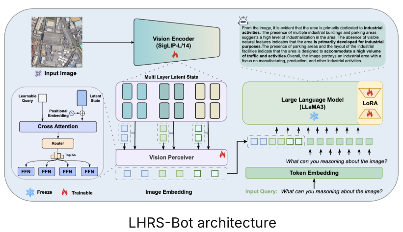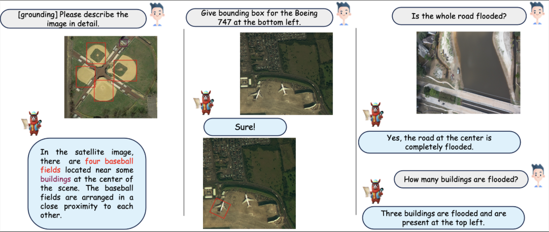 Adapt the state-of-the-art Visual Language Models (VLMs) to the task of geospatial imagery analysis. This project focuses on pretraining and finetuning general-purpose image VLMs to remote-sensing applications that require spatial reasoning and interpretability. Representative downstream tasks include visual question answering, scene classification, and visual grounding.