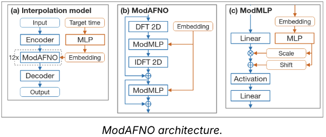 Time-conditioned spectral operator: implement ModAFNO head conditioned on the target offset; train with reconstruction + physics penalties.